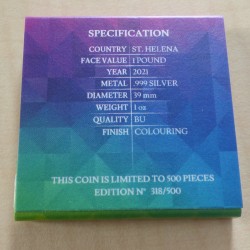 Sainte Helene 1£ 2021 Victory Through Harmony coloré en argent 99.9% 1 oz+CoA