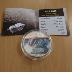 US 1$ Silver Eagle 2019 coloré Next Step to the Moon argent 99.9% 1oz +CoA