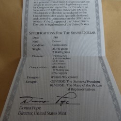 US 1$ 1989-D Congrès 200 ans Commemorative en argent 90% (26.73 g)+Boite+CoA