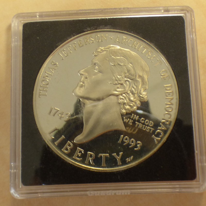 US 1$ 1993-P Jefferson Monticello PROOF Commemorative en argent 90% (26.73 g)