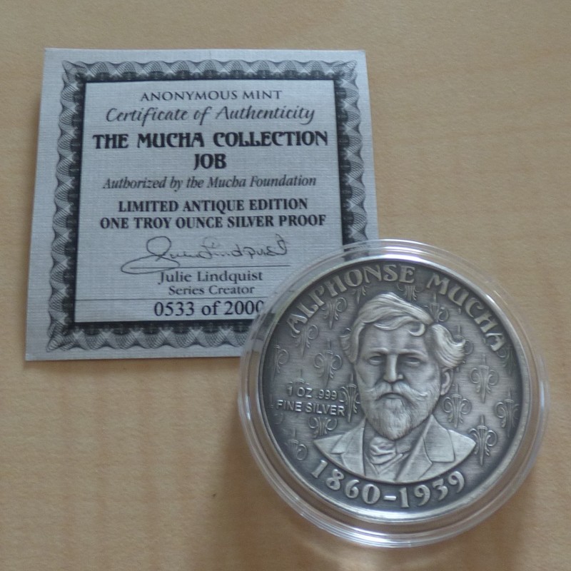 Ronde US Mucha Collection JOB 1oz argent 99.9% antique finish+CoA